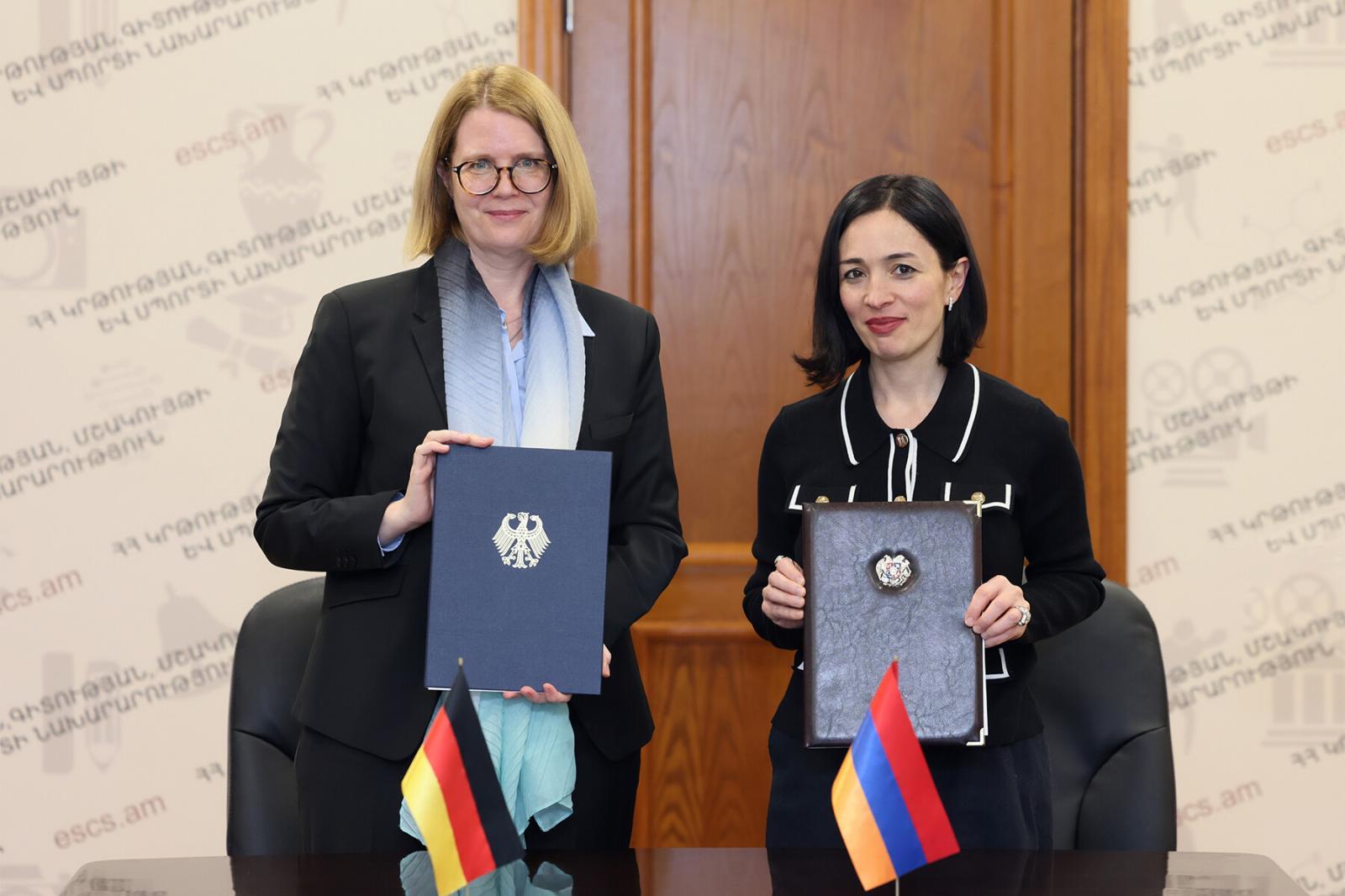Как сообщили Арменпресс в пресс-службе МОНКС, документ подписали министр образования, науки, культуры и спорта Республики Армения Жанна Андреасян и посол Федеративной Республики Германия в Республике Армения Клаудия Буш.