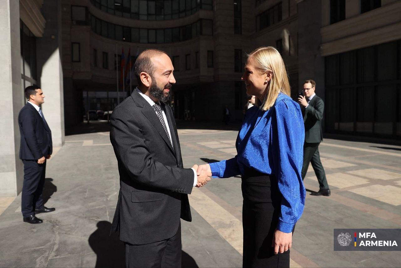 В МИД Армении состоялась встреча в формате тет-а-тет министра иностранных дел Армении Арарата Мирзояна с действующим председателем ОБСЕ, министром иностранных дел Финляндии Элиной Валтонен.