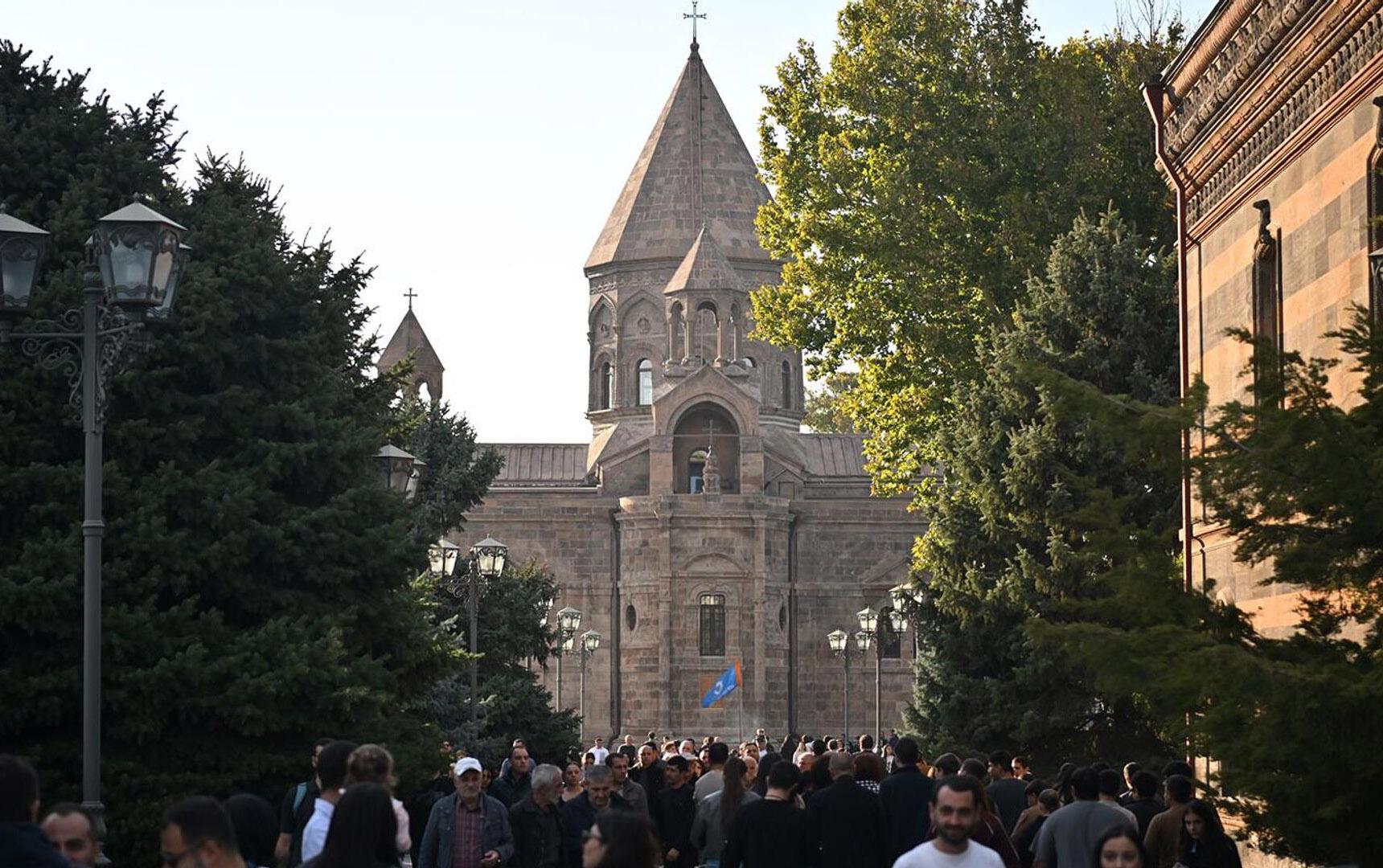 У Кафедрального движения в Эчмиадзине в эти минуты собираются участники паломничества, инициированного движением «По-нашему» арестованного бизнесмена Самвела Карапетяна.
