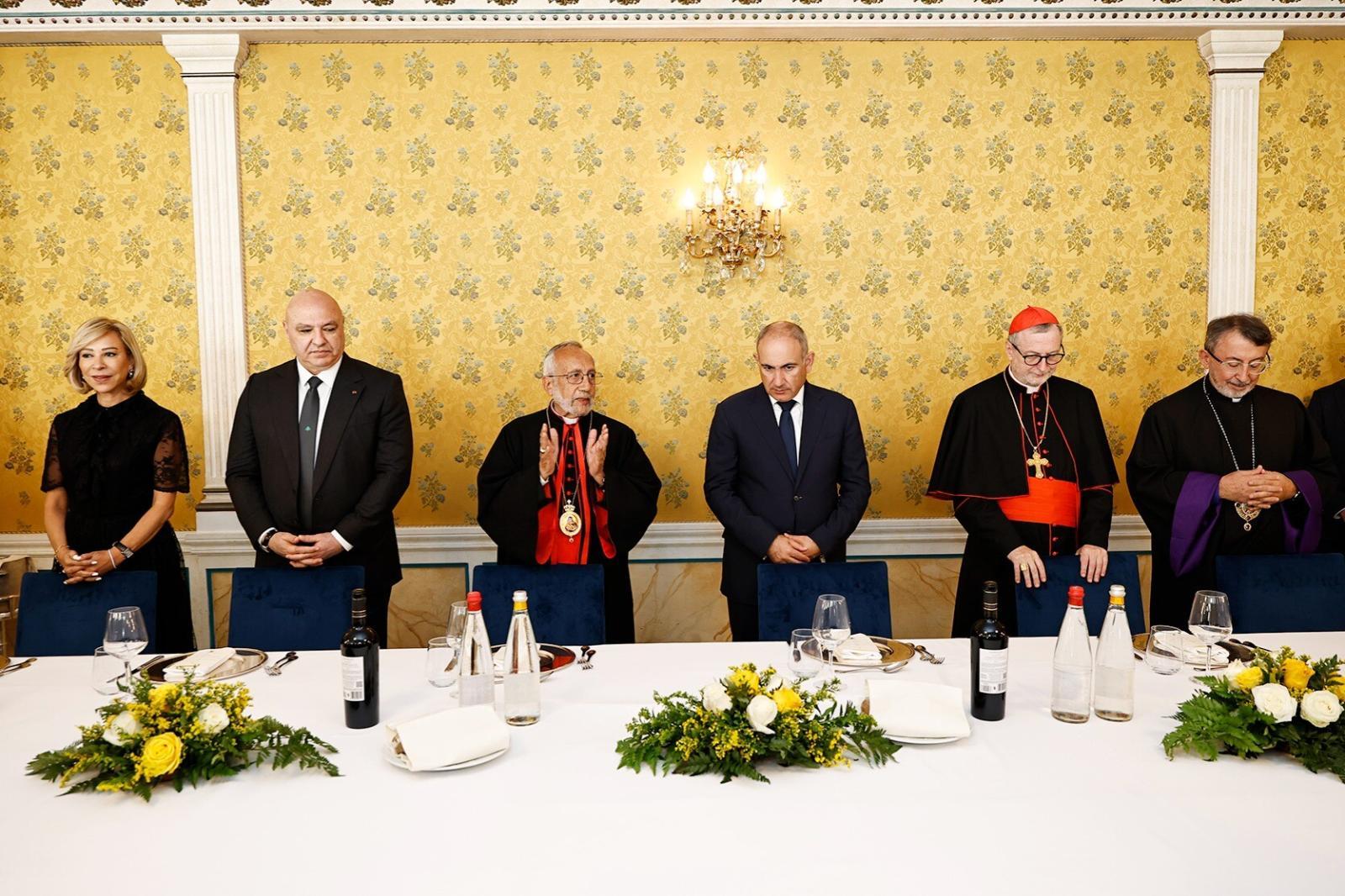 Как сообщили Арменпресс в Департаменте информации и по связям с общественностью аппарата премьер-министра Армении, обед был дан от имени Католикоса-Патриарха Католической армянской церкви Дома Киликийского Рафаэла Бедроса XXI.