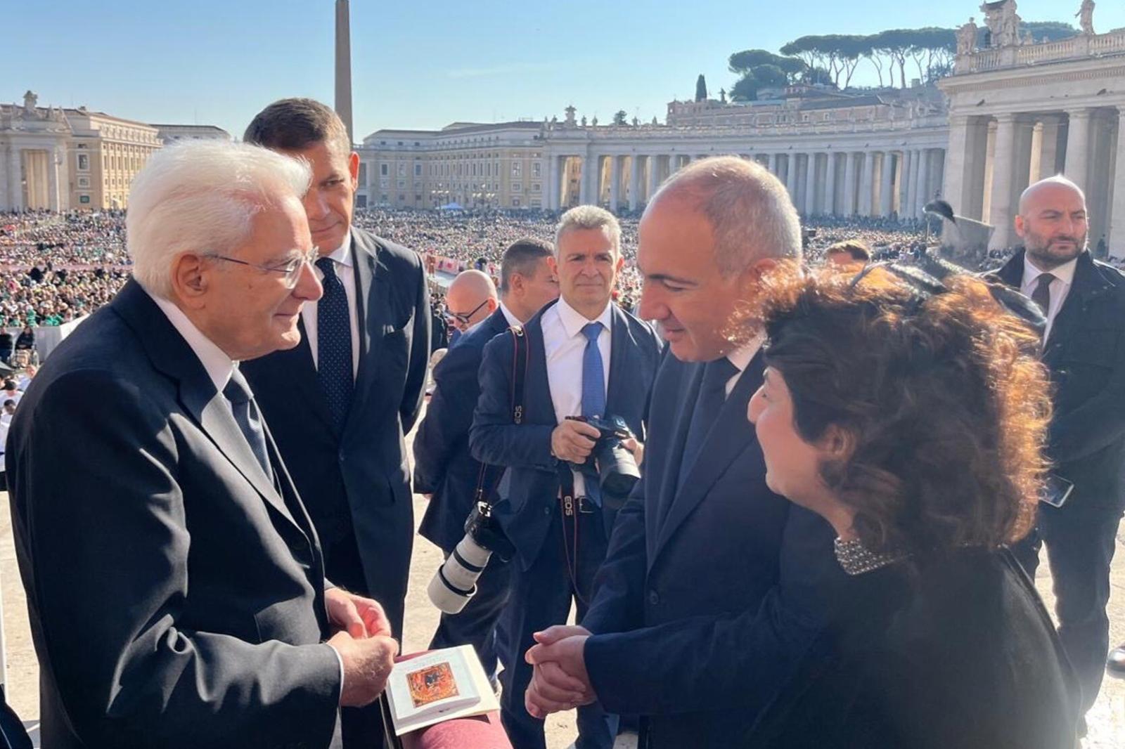 В ходе рабочего визита в Святой Престол премьер-министр Никол Пашинян провел краткую беседу с президентом Италии Серджо Маттареллой.