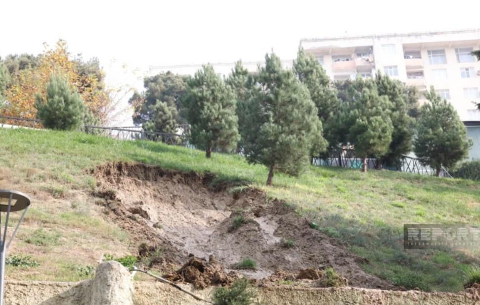 Во время оползня в поселке Ахмедли никто не пострадал.