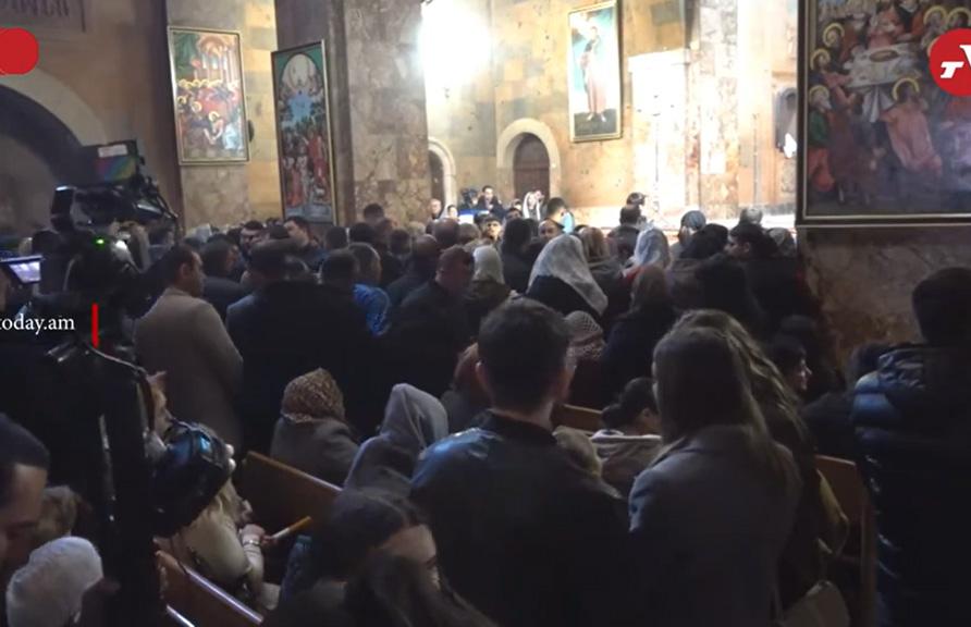 Иерей не упомянул Католикоса Гарегина II в ходе литургии. Корреспондент агентства «Новости-Армения» сообщает, что это сделал кто-то из присутствующих.