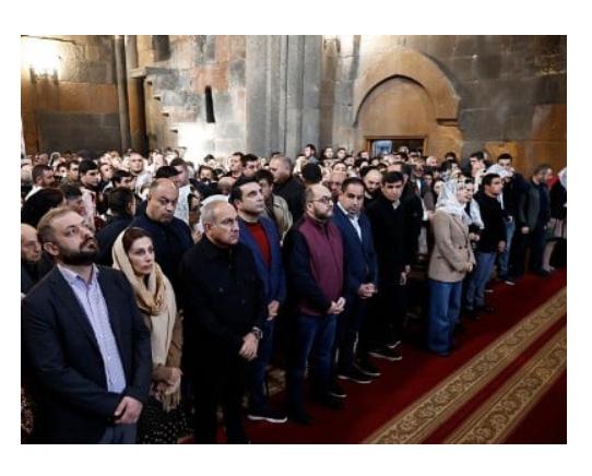 «С раннего утра вокруг неё было сосредоточено беспрецедентное количество полицейских сил, а во время литургии имя Католикоса всех армян Гарегина II вновь не было упомянуто. Это вызвало открытое недовольство верующих, которые громко скандировали имя Его Святейшества. Показательно, что в этот момент в церкви находились также координатор движения «По-нашему» Нарек Карапетян и премьер-министр Никол Пашинян, а также ряд представителей фракции «Гражданского договора».