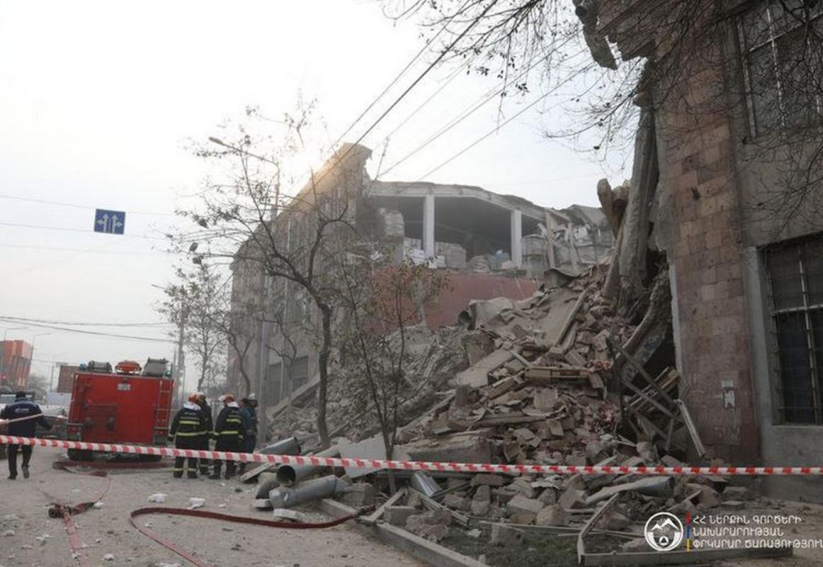 Утром в пօнедельник стало известно об обрушении в здании бывшей фортепианной фабрики на ул. Ширака. По данным МВД, три этажа (площадью по 430 кв.м каждый) использовались как складские, производственные и офисные помещения.
