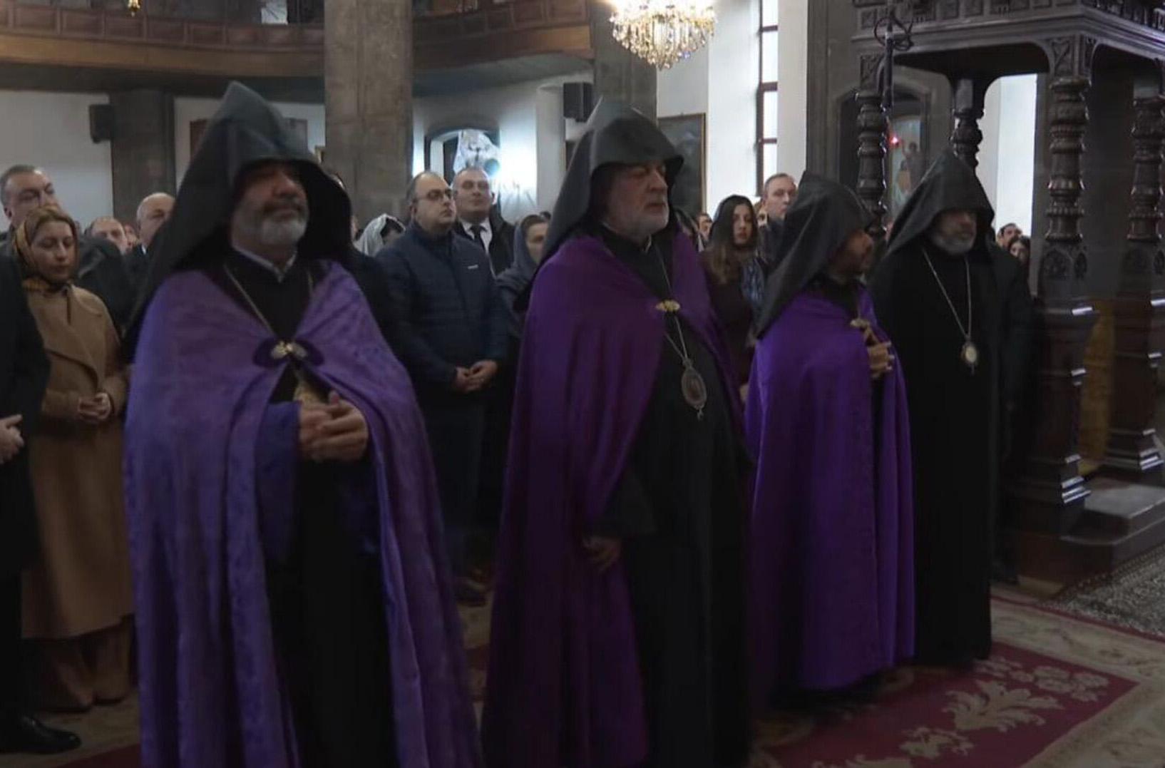 В литургии участвуют несколько архиереев, которые ранее встречались с Пашиняном и выступили против Католикоса Всех Армян Гарегина II.