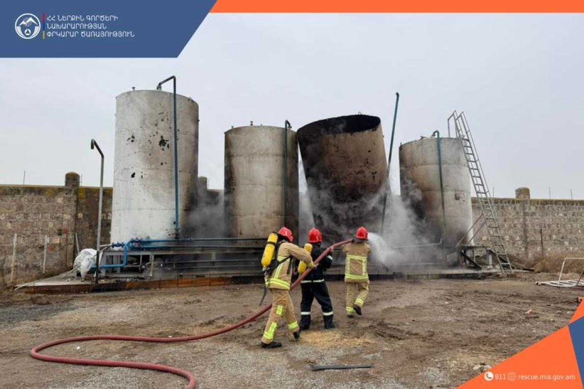 Как сообщает Спасательная служба МВД Армении, 12 декабря в 14:53 в национальный центр управления в кризисных ситуациях поступил сигнал о том, что на территории бывшего хлева в селе Норакет Армавирской области при проведении сварочных работ в пустой металлической топливной цистерне (40 т) произошел взрыв с последующим возгоранием.