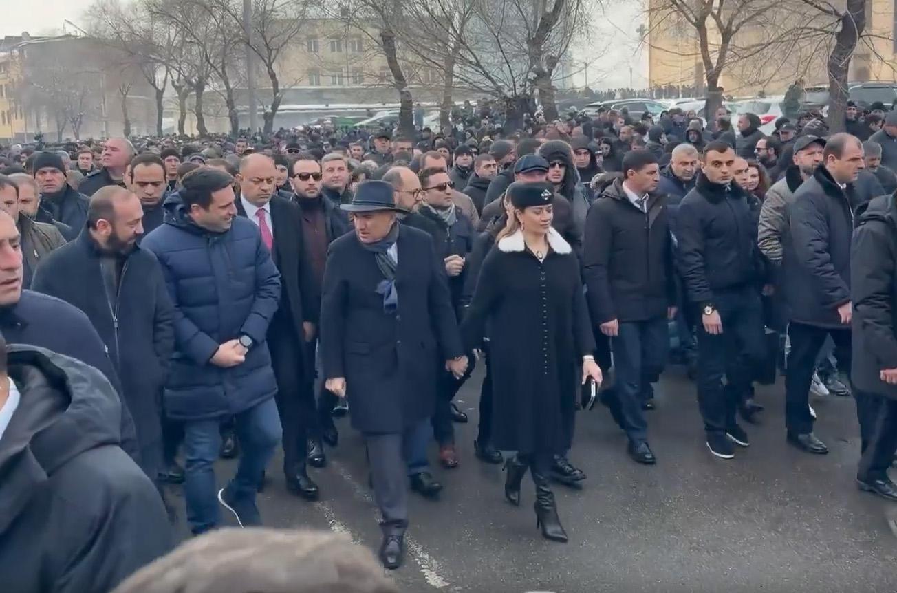В шествии участвуют чиновники, которые вместе с премьером присутствовали на рождественской литургии в кафедральном соборе Сурб Григор Лусаворич. К ним присоединились и другие члены правящей партии «Гражданский договор».