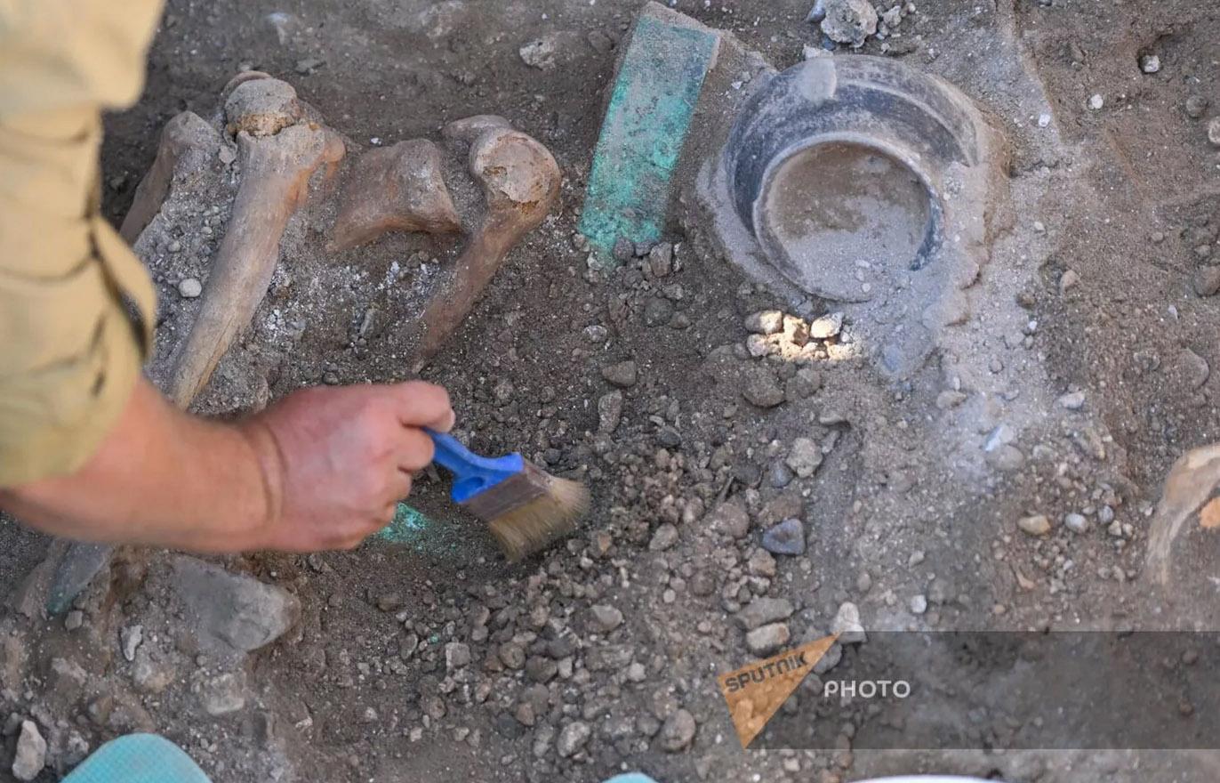 Внутреннее убранство гробницы напоминает царские усыпальницы Гордиона, а найденные предметы указывают на принадлежность усопшего к аристократии. Особое внимание исследователей привлекли бронзовые сосуды – ситулы с изображениями сцен охоты и сражений, которые напоминают артефакты из «Мидасова кургана», возможно, принадлежавшего отцу Мидаса, Гордиасу.
