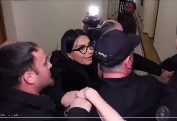 На видеокадрах видно, когда Кнар Манукян выводит служба госохраны, и попытка депутата Гегама Манукяна «отвоевать» ее не увенчалась успехом.