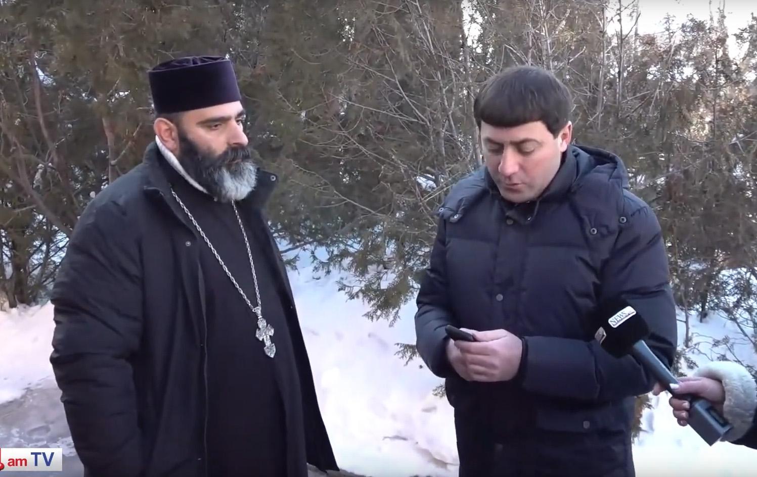 Губернатор Арагацотнской области Сергей Мовсисян пытается убедить отца Айка, духовного настоятеля церкви Сурб Аствацацин в Талине, покинуть церковь, чтобы их «иерей сердца» мог отслужить литургию для премьер-министра Армении Никола Пашиняна.