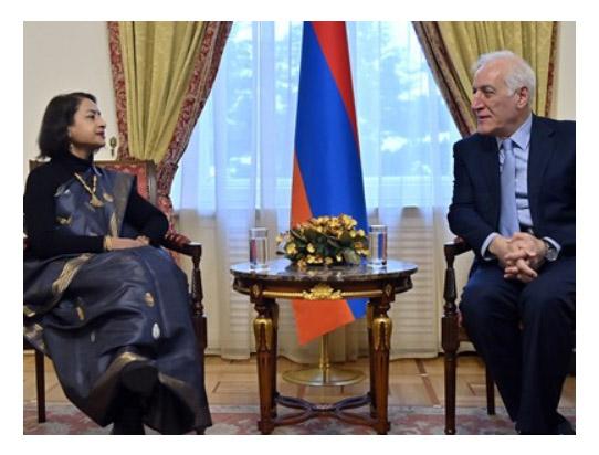 Президент Республики Армения Ваагн Хачатурян принял Чрезвычайного и Полномочного посла Индии в Армении Нилакши Саха Синху по случаю национального праздника Индии — Дня Республики.