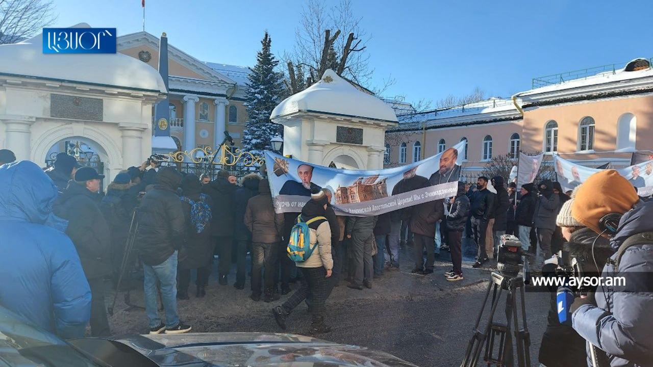 У посольства Армении в Москве проходит акция в поддержку Армянской Апостольской Святой Церкви