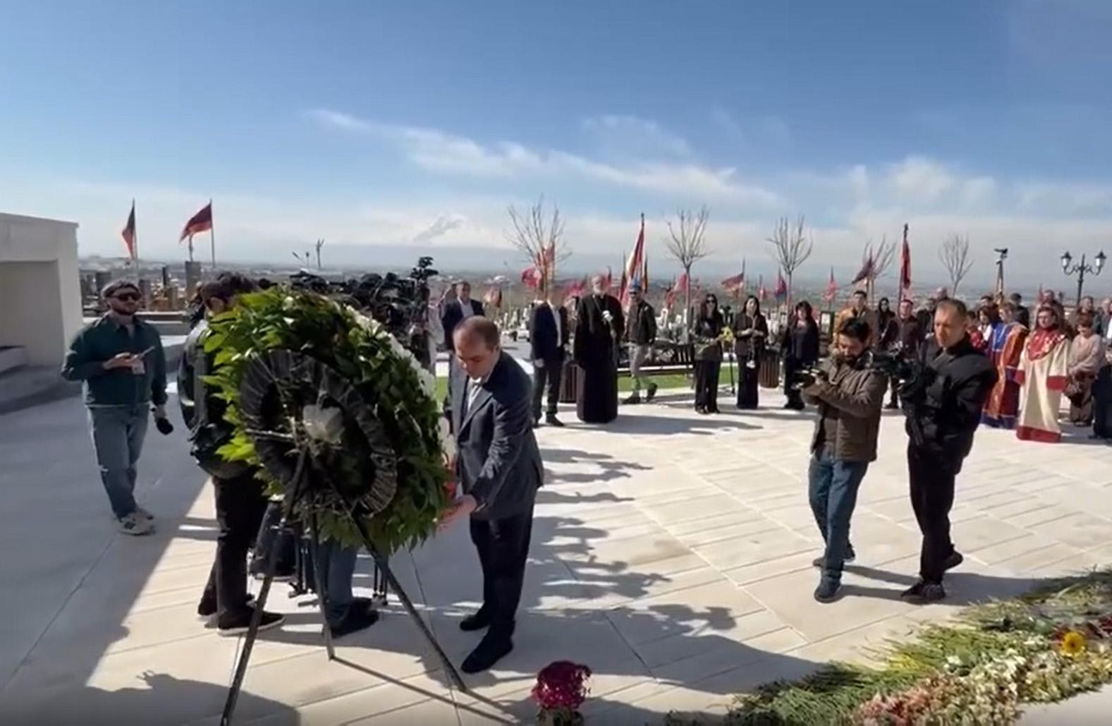 Оппозиционные депутаты парламента Армении, экс-лидер Нагорного Карабаха Самвел Шахраманян, бывший настоятель Дадиванка, ныне священнослужитель церкви Србоц Вардананц в Воинском пантеоне «Ераблур» иерей Тер Ованес Ованнисян, а также бывшие парламентарии почтили память погибших в ходе Апрельской войны 2016 года в Нагорном Карабахе.