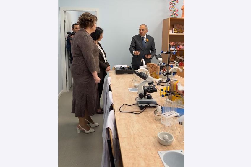 Мы благодарны, что в отсутствие материалов наши школы, наши учителя работали, иначе они могли бы сказать, что невозможно преподавать химию на нормальном уровне без экспериментальной работы. Мы очень благодарны вам за то, что вы делали это в таких условиях», — сказал Пашинян, подчеркнув, что под всеми столами есть розетки для подключения электрических микроскопов.