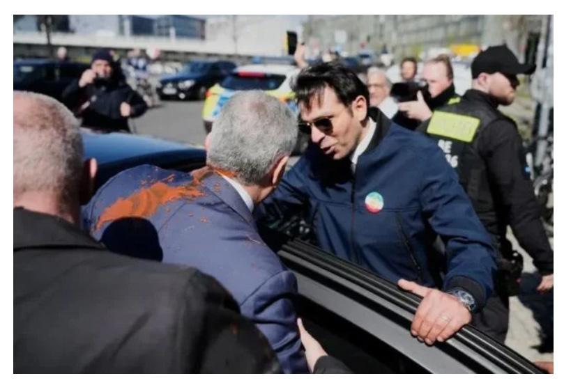 Демонстрант облил красным веществом в Берлине наследного принца Ирана в изгнании Резу Пехлеви, сообщает телеканал Al Jazeera.