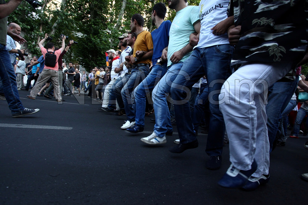 Вначале акция проходила на площади Свободы, однако затем демонстранты двинулись к резиденции президента Армении, на ул. Баграмяна, где уже находился усиленный полицейский кордон.