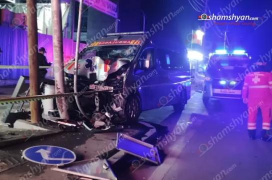 Машина «Скорой помощи» врезалась в столб в Ереване: водитель, медсестра и врач госпитализированы