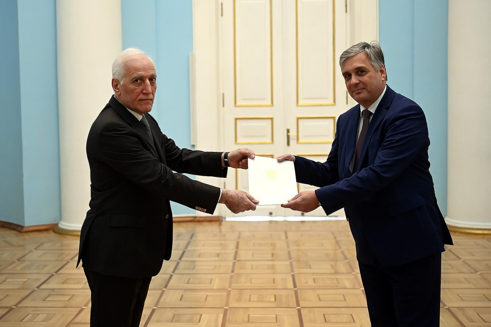 Как сообщили Арменпресс в Управлении по связям с общественностью аппарата президента Армении, Ваагн Хачатурян поздравил посла с назначением и пожелал ему успехов.