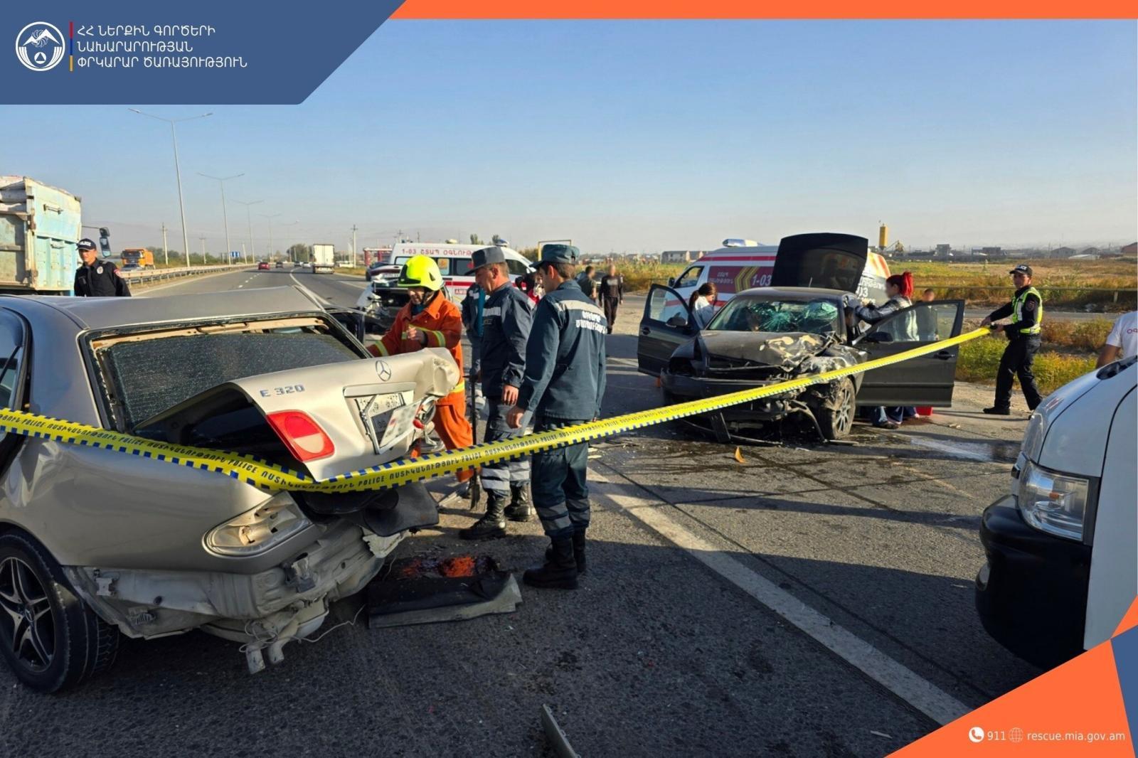 5 октября в 08:31 в Центр управления кризисными ситуациями Араратского регионального спасательного управления поступило сообщение о том, что на трассе Ереван-Ерасх, в районе Масисского моста, произошло дорожно-транспортное происшествие.