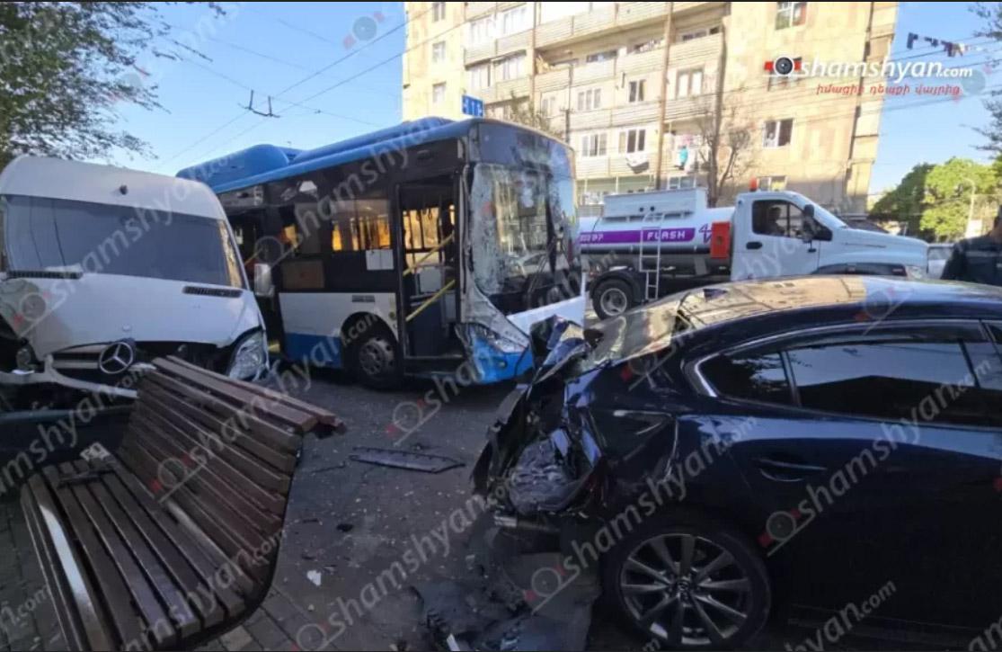 В Ереване автобус стал участником крупного ДТП с пятью автомобилями