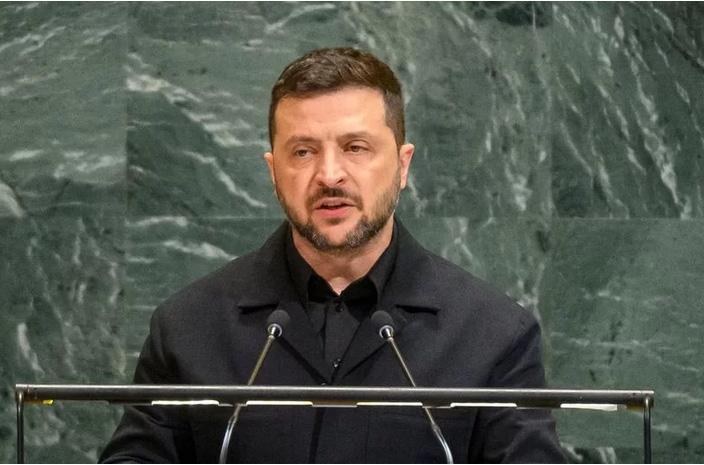 Также на плакате рядом с Каддафи нарисован и Владимир Зеленский.