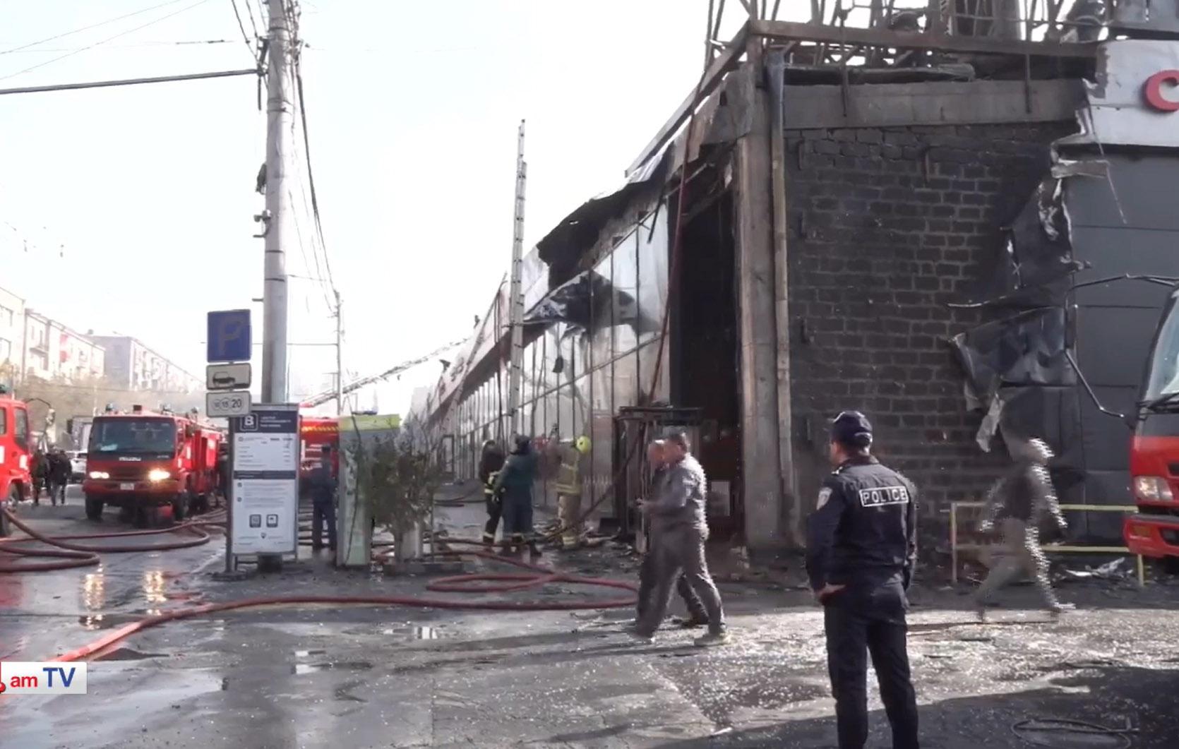 Пожар в здании супермаркета «Ереван Сити», расположенного по адресу: проспект Комитаса 60/2, пока не удалось потушить.