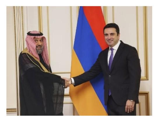 Спикер парламента Армении Ален Симонян принял делегацию во главе с руководителем группы дружбы Саудовская Аравия-Армения Консультативного совета Королевства Саудовская Аравия Али Мухаммадом аль-Шахрани.