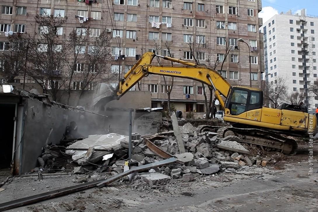 В административном районе «Кентрон» продолжаются работы по демонтажу незаконно установленных киосков.