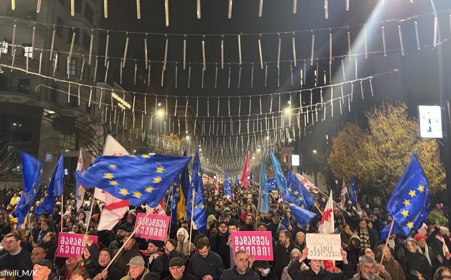 В Тбилиси несколько тысяч человек присоединились к шествию в годовщину протестов против заморозки курса Грузии на ЕС.