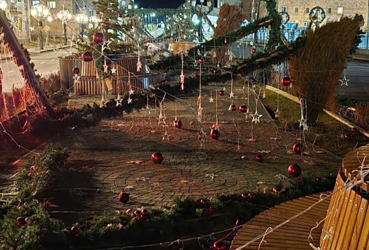 Сорваны гигантские украшения на километровой аллее, столбы упали на землю. По информации Lurer, серьезно не пострадали елка, площадка, на которой она установлена, и разукрашенный мост.
