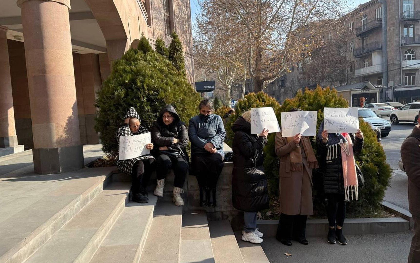 Жертвы криптомошенников проводят пикет у здания СК Армении