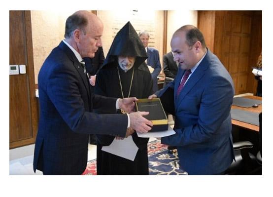 На торжественной церемонии передачи Библии присутствовали также предстоятель Западной епархии Армянской Апостольской Святой Церкви США, архиепископ Овнан Тертерян, и председатель Епархиального совета Деррик Гукасян.