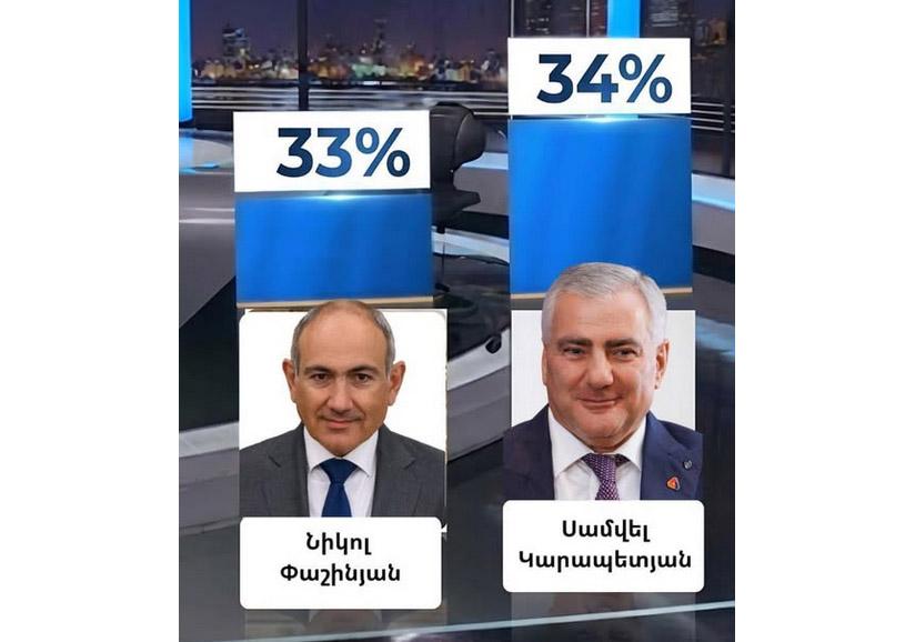 «Это итоговые результаты сегодняшнего опроса. Опрос был проведён компанией EMPIRICA (https://empirica.am), и вопрос звучал так: за кого бы вы проголосовали, если бы выбор стоял между этими двумя политическими деятелями?