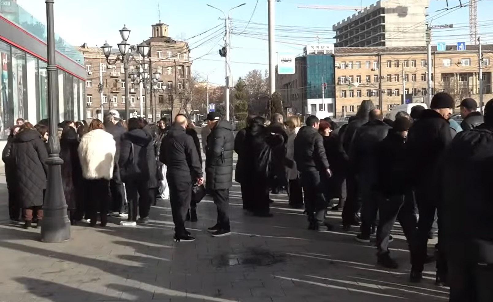 Работники ереванского ТЦ «Россия» проводят акцию протеста