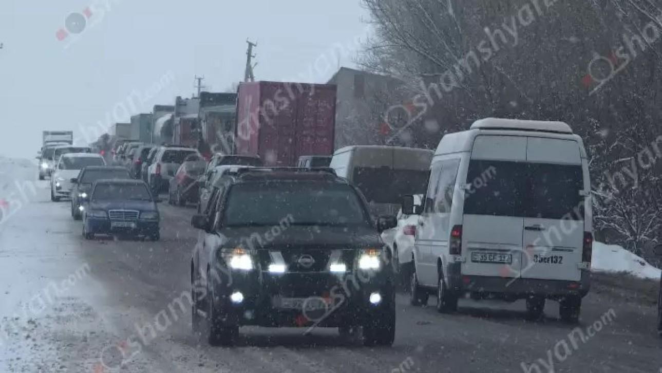 В Арагацотнской области из-за гололёда образовалась пробка протяжённостью около 18 километров — число автомобилей превышает 4 тысячи