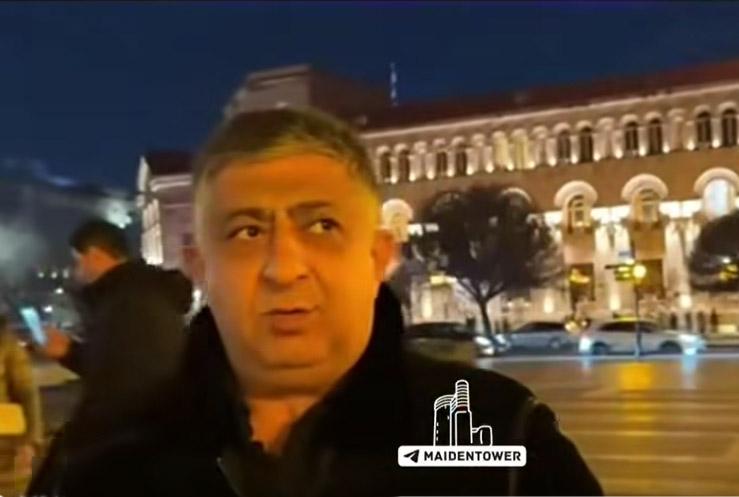На нём изображен мужчина лет 55-60, говорящий на азербайджанском языке и находящийся на площади Республики в Ереване.