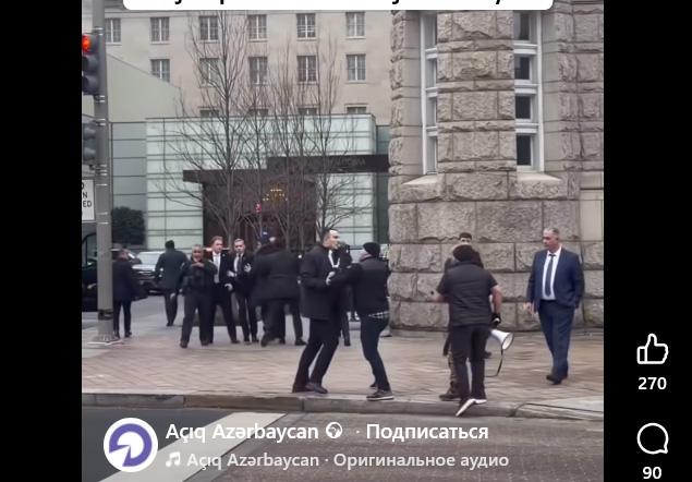 WP с их слов сообщает, что «19 февраля днем на них напали телохранители президента Ильхама Алиева возле отеля Waldorf Astoria в Вашингтоне, в нескольких кварталах от Белого дома».