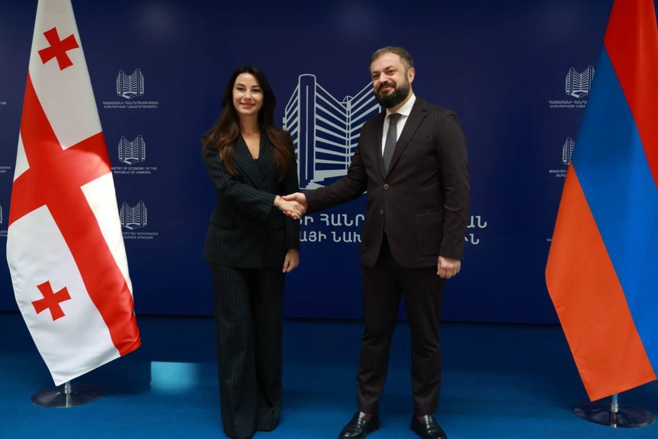 Делегация во главе с министром экономики и устойчивого развития Грузии Мариам Квривишвили находится в Армении по приглашению министра экономики Республики Армения Геворга Папояна.