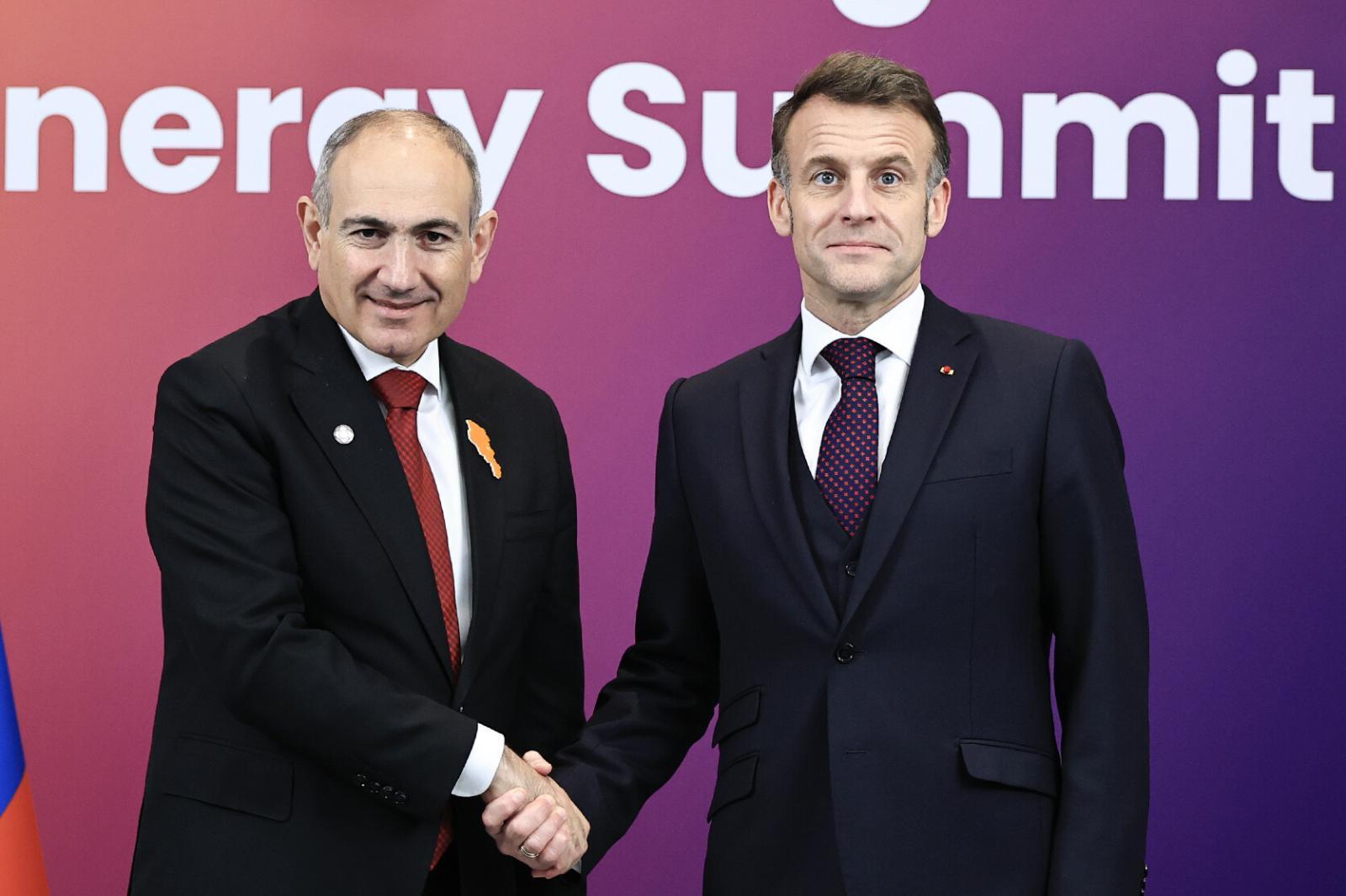 Значок на пиджаке Пашиняна привлек внимание Макрона