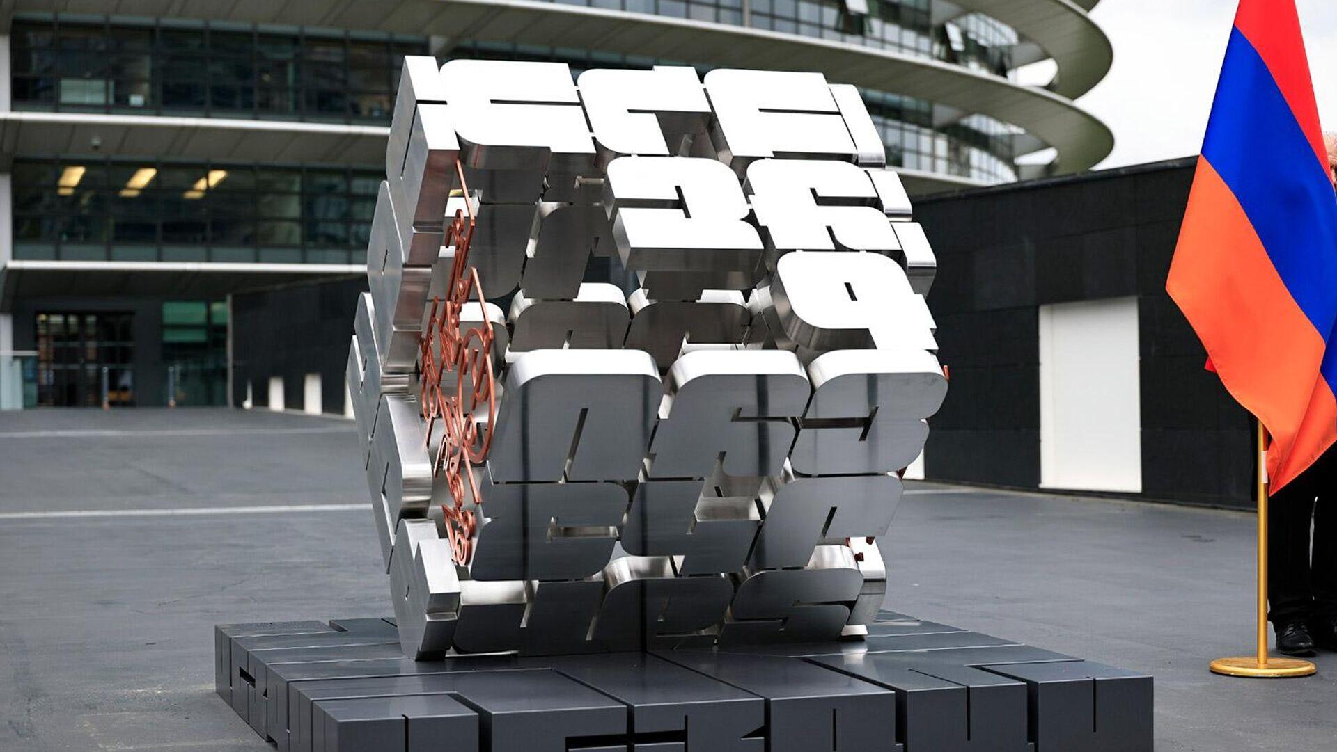 Памятник армянскому алфавиту установлен у здания Европейского парламента в Страсбурге