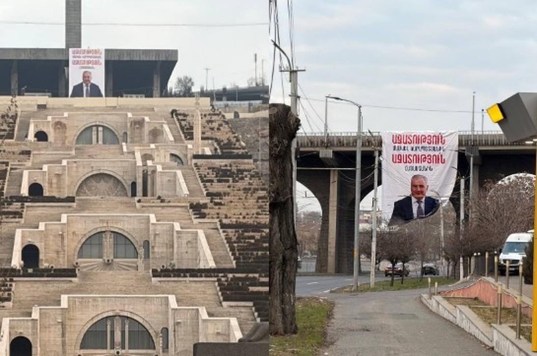 В день судебного заседания по делу Самвела Карапетяна по всей столице, в наиболее заметных местах города, развешиваются крупные транспаранты с надписью: «Свободу Самвелу Карапетяну, свободу Армении».