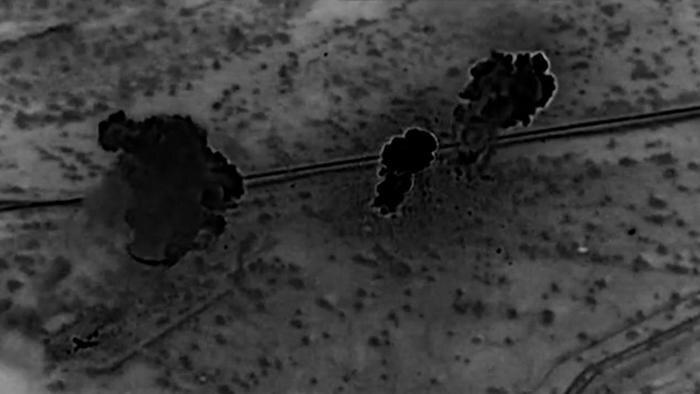 На чёрно-белой записи видны ракетные удары по территории острова. Республиканец назвал операцию одной из самых мощных бомбардировок в истории Ближнего Востока.