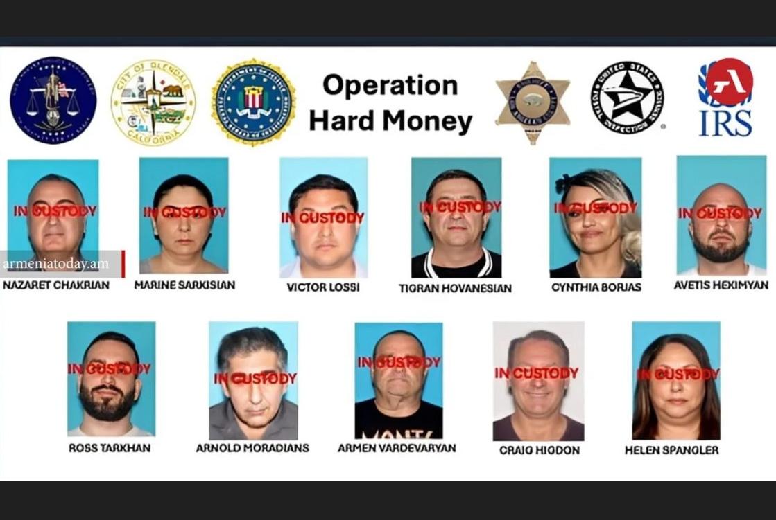 Среди задержанных — Назарет Чакрян (65 лет), Арнольд Морадянс (57 лет), Аветис Экимян (38 лет), Росс Тархан (32 года), Тигран Ованесян (56 лет), Армен Вардеварян (55 лет), Крейг Хигдон (66 лет), Хелен Спэнглер (62 года), Виктор Лосси (43 года), Марине Саркисян (49 лет) и Синтия Борхас (51 год).