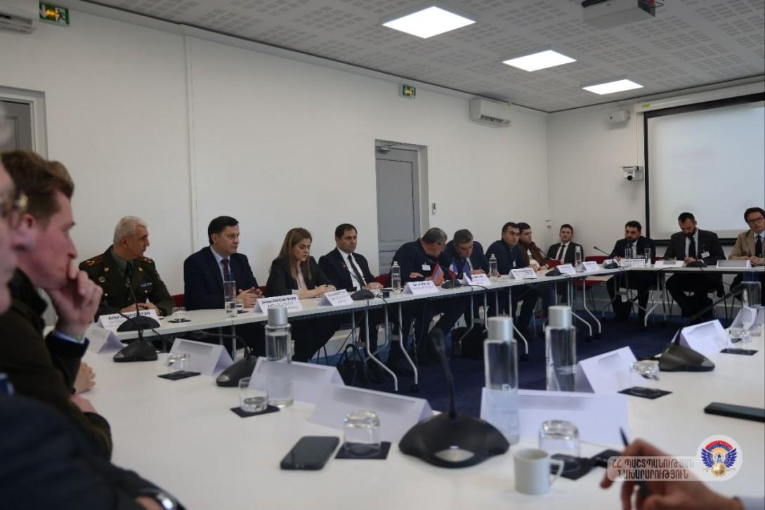 Министр обороны Армении Сурен Папикян, находящийся во Франции с рабочим визитом, сегодня встретился с представителями французских оборонных компаний в рамках мероприятия «Движение международных предприятий во Франции».