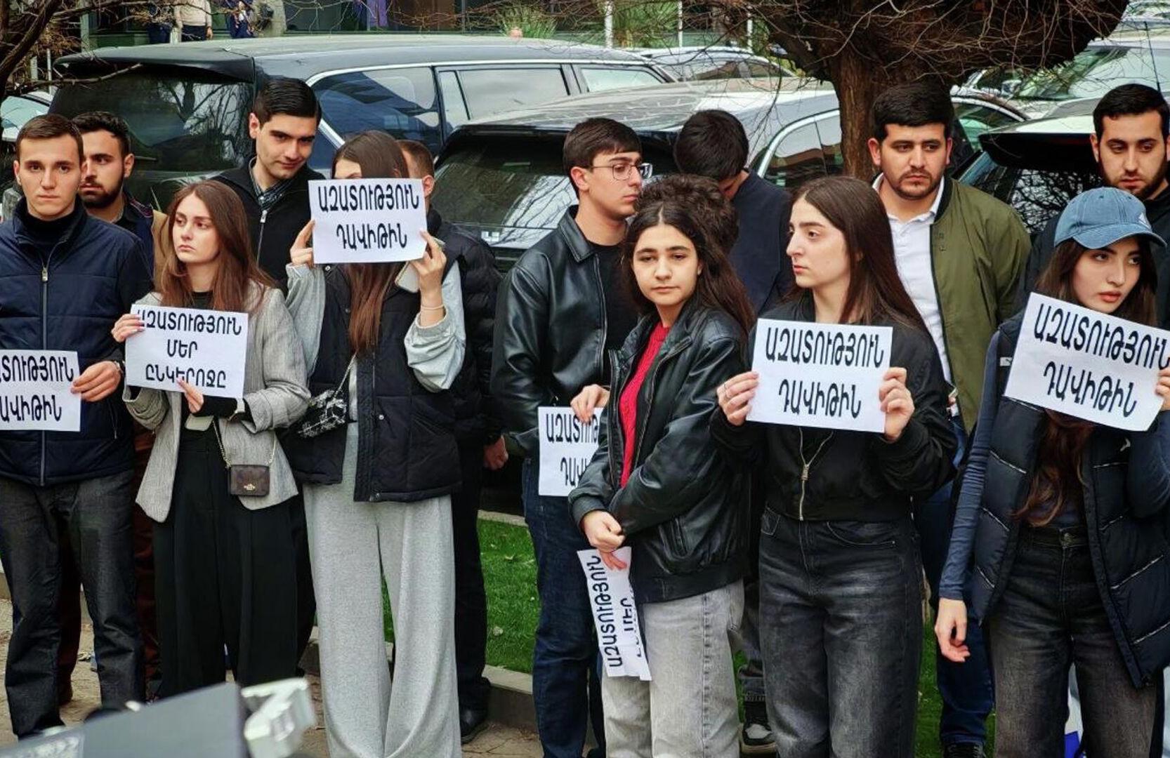 2 апреля одноклассники Минасяна провели акцию у здания ООН в Ереване, требуя его освобождения.