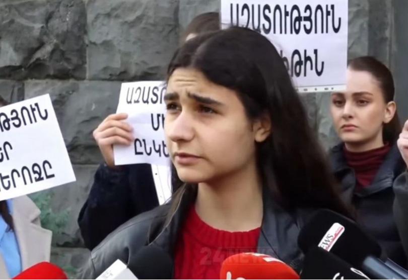 Одноклассники Давида Минасяна, арестованного 1 апреля сроком на два месяца, вместе со своими родителями собрались у здания Генеральной прокуратуры Армении, обращаясь с просьбой к генпрокурору Анне Вардапетян отменить избранную в отношении их друга меру пресечения в виде ареста.