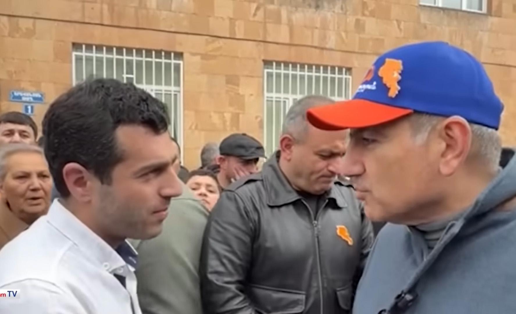 Один из телохранителей Пашиняна попытался оттолкнуть гражданина рукой, но Пашинян вмешался и не позволил этого сделать.