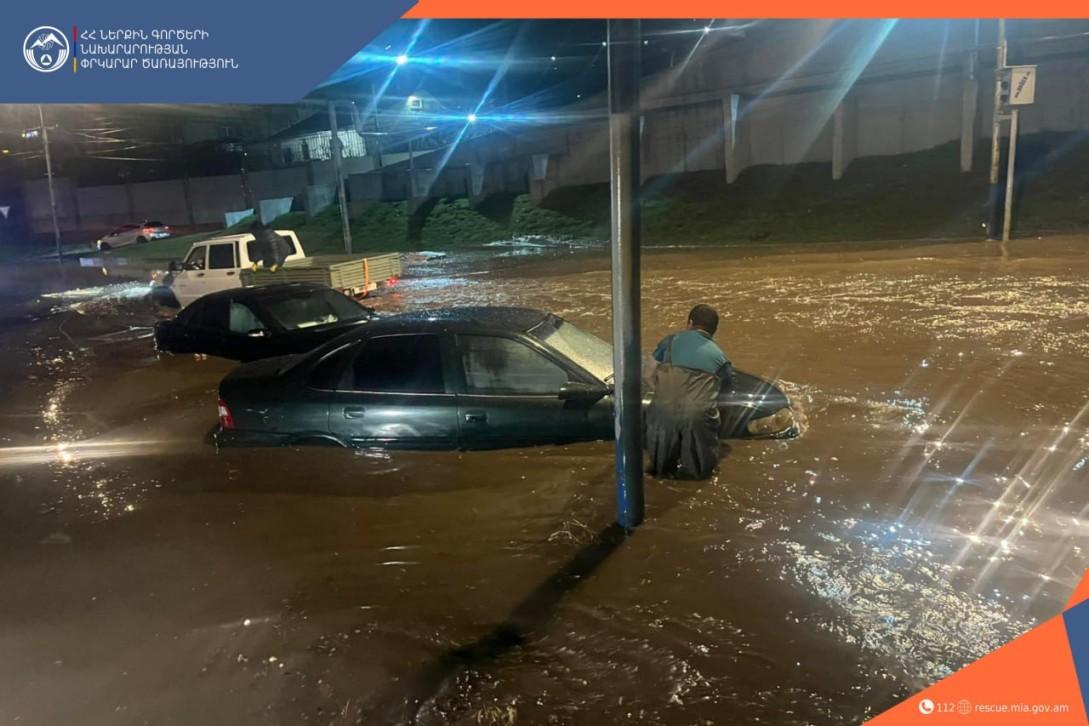 12 апреля, начиная с 23:40, в центр оперативного управления 112 МВД поступило сообщение о транспортных средствах, заблокированных дождевыми потоками на улицах Севана и Гюрджяна в Ереване в результате проливного дождя.