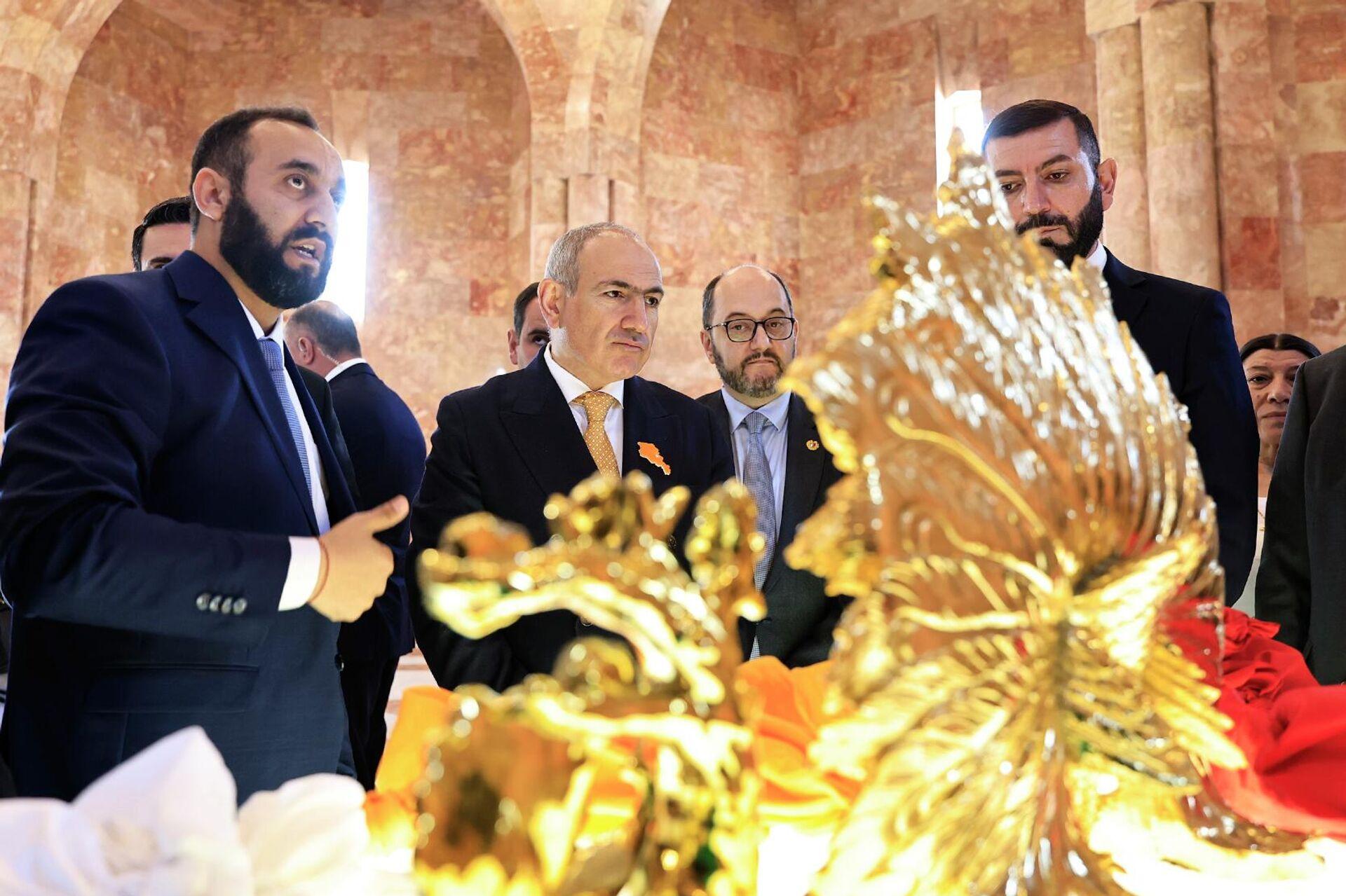 Премьер-министр побывал на мемориале у расположенного в селе езидского храма Зийярат, где ему представили историю 10 героев езидской нации.